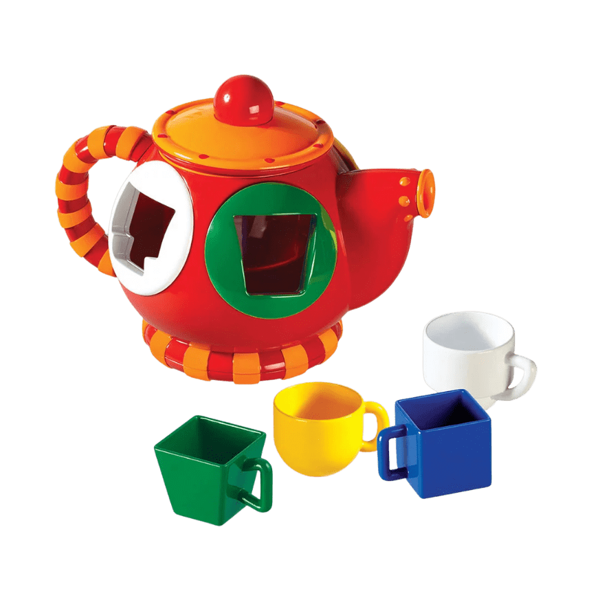 فرز الأشكال: يقوم الأطفال بمطابقة الأكواب الملونة مع قطع الشكل في إبريق الشاي، مما يعزز التنسيق بين اليد والعين.