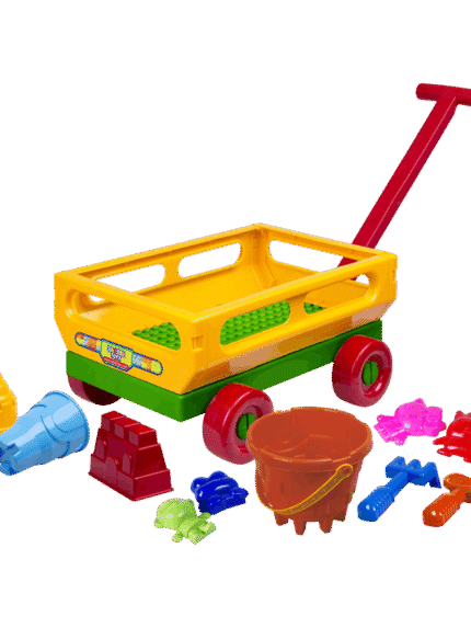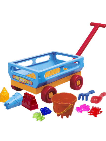Product Overview: This complete beach set includes a red bucket, a shovel, and a plastic rake, designed for children to