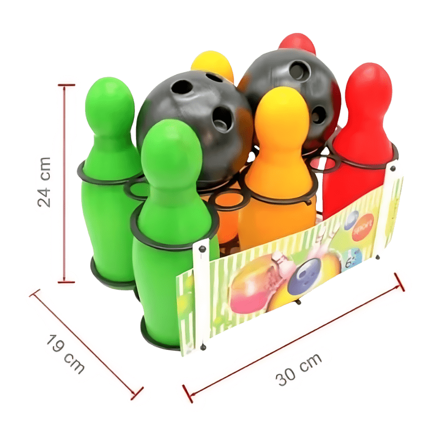 ساده و رنگ‌های شاد، برای بازی در خانه، مهدکودک یا هر فضای بازی دیگری مناسب است. هر ست شامل ۶ عدد بولینگ و ۲ عدد توپ مخصوص بازی است.