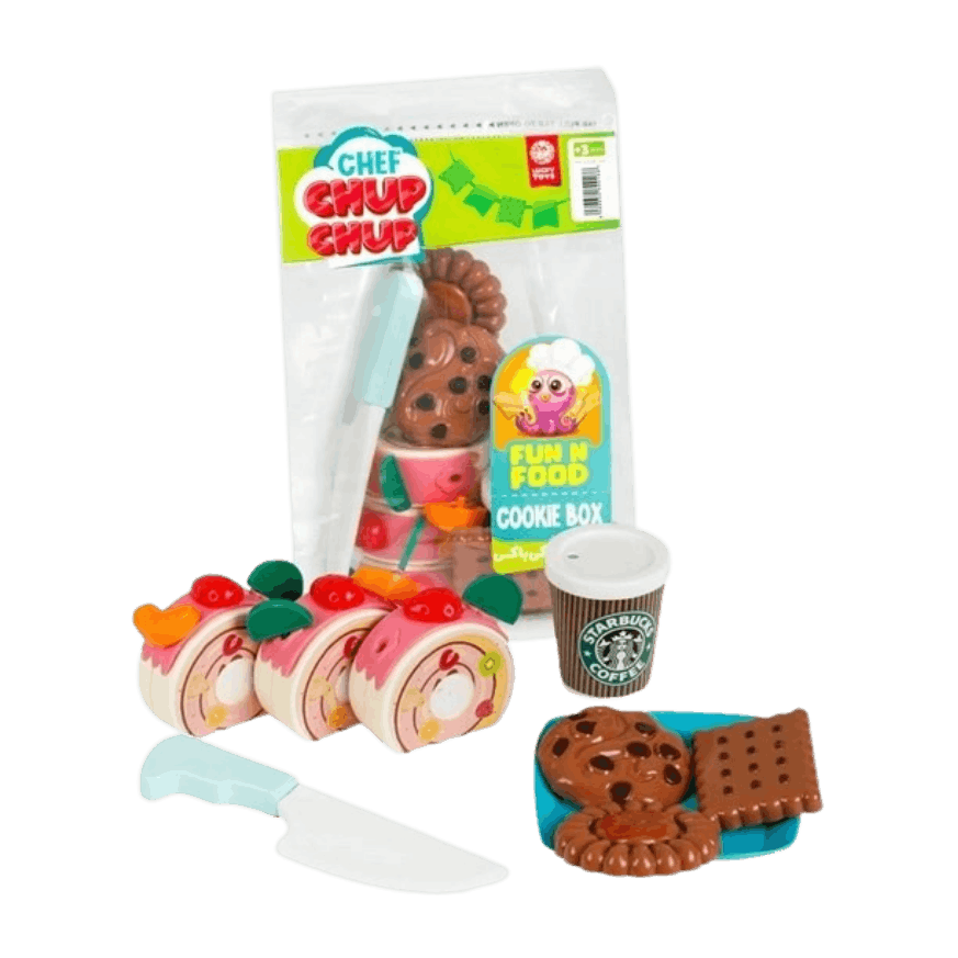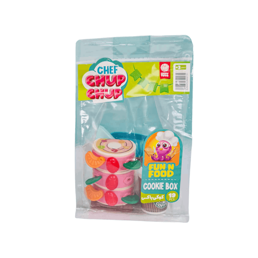 این اسباب بازی یکی از محصولات شرکت لاکی توی هست. تمام کودکانی که به شیرینی پزی و پزیرایی علاقه دارند از این اسباب بازی لذت خواهند برد. این محصول یک جعبه کوکی است و در بسته بندی نایلونی به شما عرضه میگردد. شامل چاقو برای برش شیرینی ، 3 تکه شرینی خشک و 3 تکه کوکی ، 1 عدد پیش دستی پلاستیکی و یک عدد نوشیدنی است.
