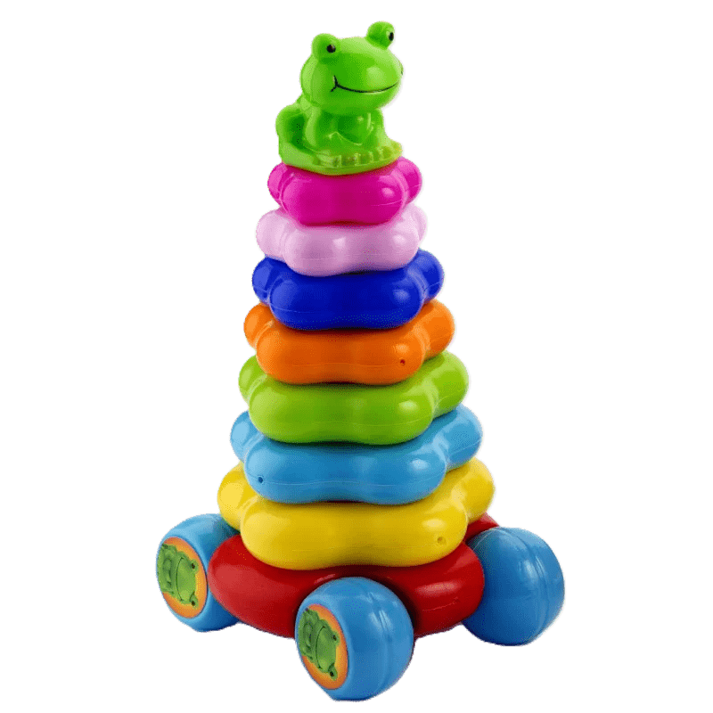 * حلقه‌ها: ۷ حلقه رنگی، پایه چرخ‌دار، قورباغه