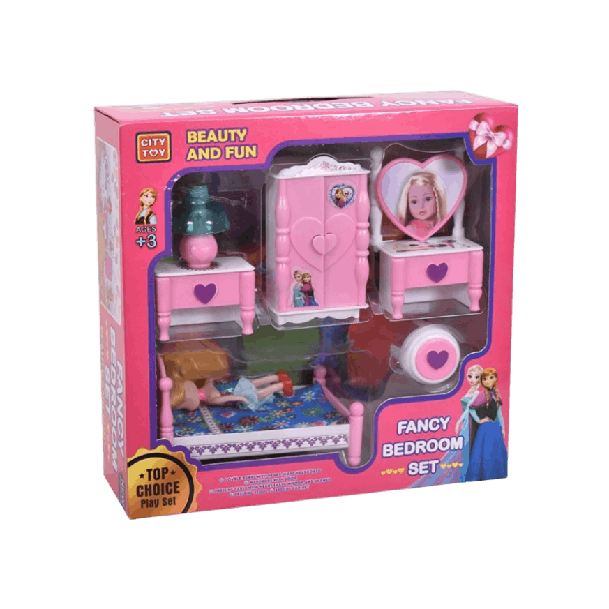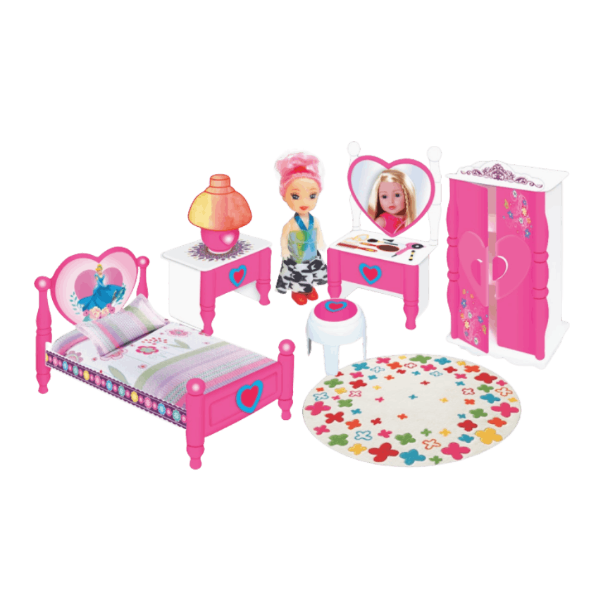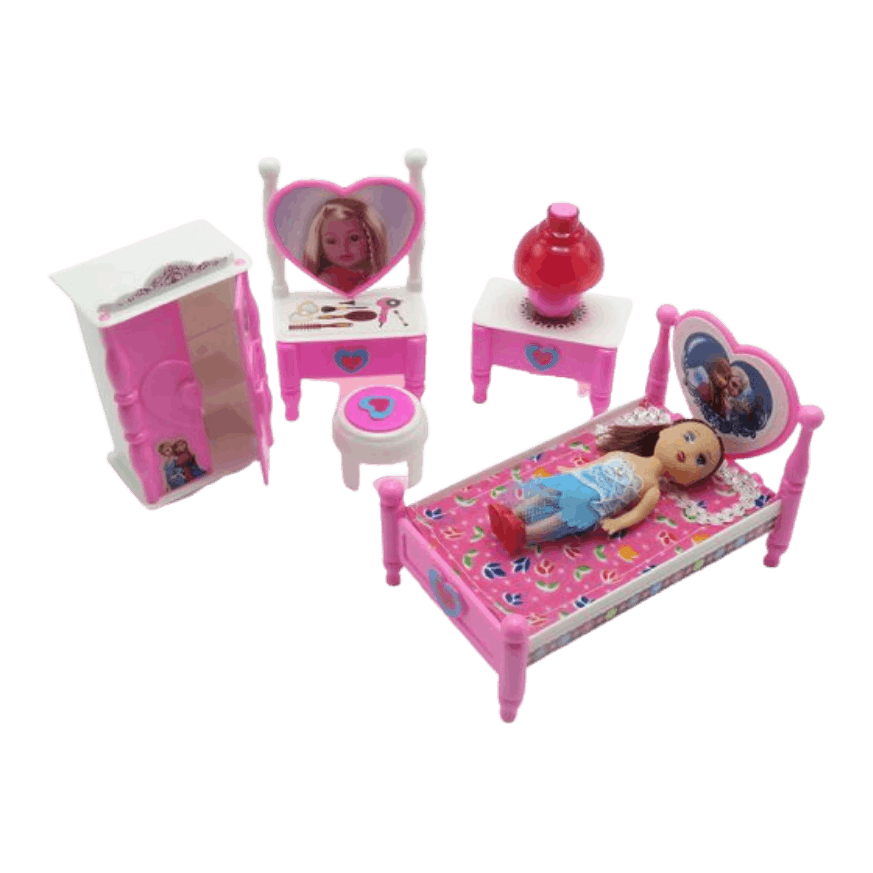 این سرویس خواب یکی از اسباب بازی های محبوب بین دختران قشنگ است. این محصول شامل تخت، میز و آینه، کمد و چند تیکه ی دیگر از وسایل یک اتاق خواب به همراه یک باربی است.