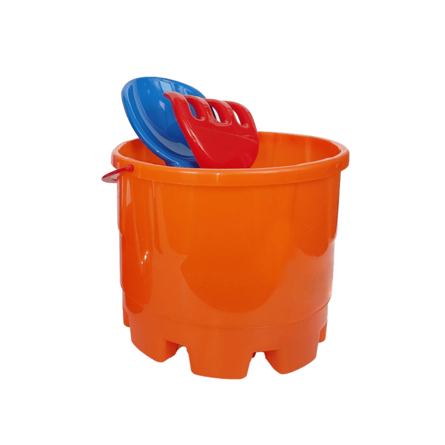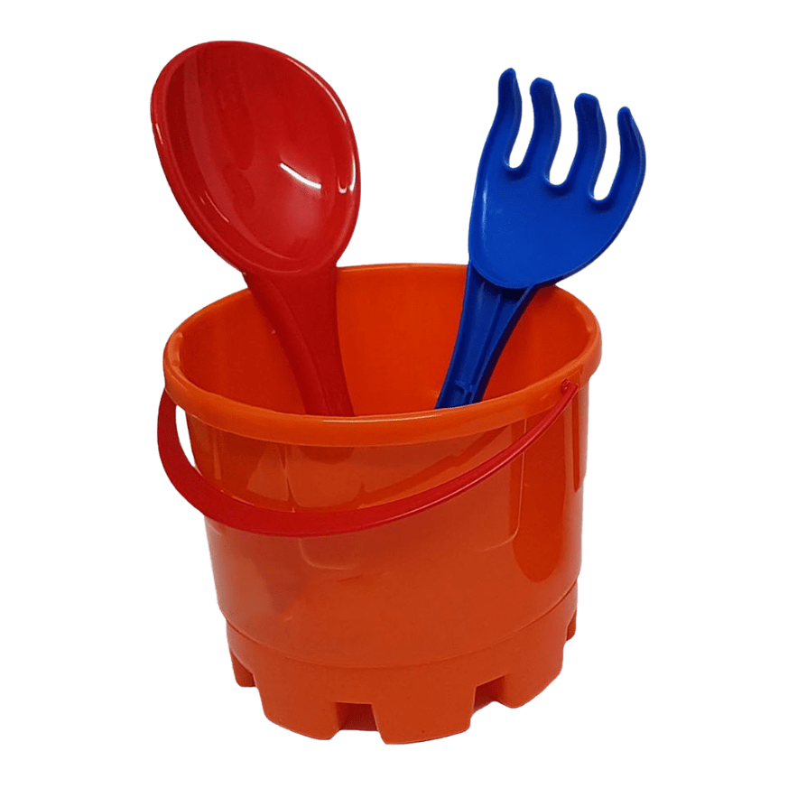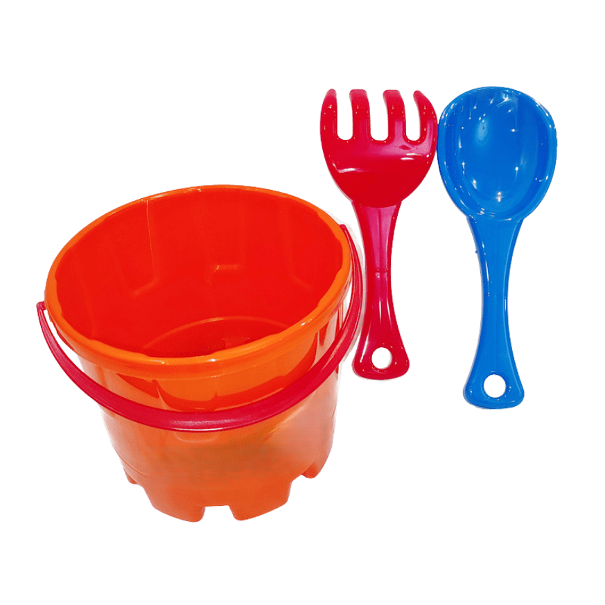 این مجموعه کامل ساحلی شامل یک سطل به رنگ قرمز، یک بیل و یک چنگک پلاستیکی میباشد که برای بازی کودکان در ساحل، پارکهای شنی و حتی حیاط خانه طراحی شده است. تمامی قطعات از پلاستیک مرغوب تولید شدهاند.