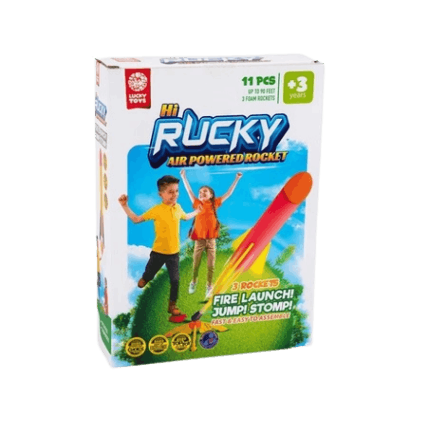 موشک راکی یکی از محصولات عالی برای فضای باز است. این اسباب بازی رو کودکان میتوانند در یک فضای باز روی زمین قرار دهند و موشک را در مکان مناسب برای پرتاب قرار دهند و از پاهای کوچکشان برای فشار دادن مخزن هوا استفاده کنند. با فشردن مخزن هوا موشک به هوا پرتاب میشود.