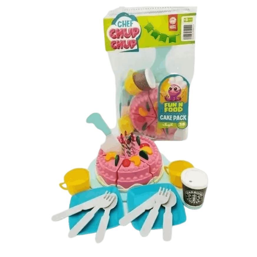 این اسباب بازی یکی از محصولات شرکت لاکی توی هست. تمام کودکانی که به شیرینی پزی و پزیرایی علاقه دارند از این اسباب بازی لذت خواهند برد. این محصول یک پک کیک است و در بسته بندی نایلونی به شما عرضه میگردد. شامل چاقو برای برش کیک ، سینی مناسب کیک و 2 ست چاقو و چنگال و قاشق و 3 عدد پیش دستی پلاستیکی و یک عدد نوشیندی و  2 لیوان است.
