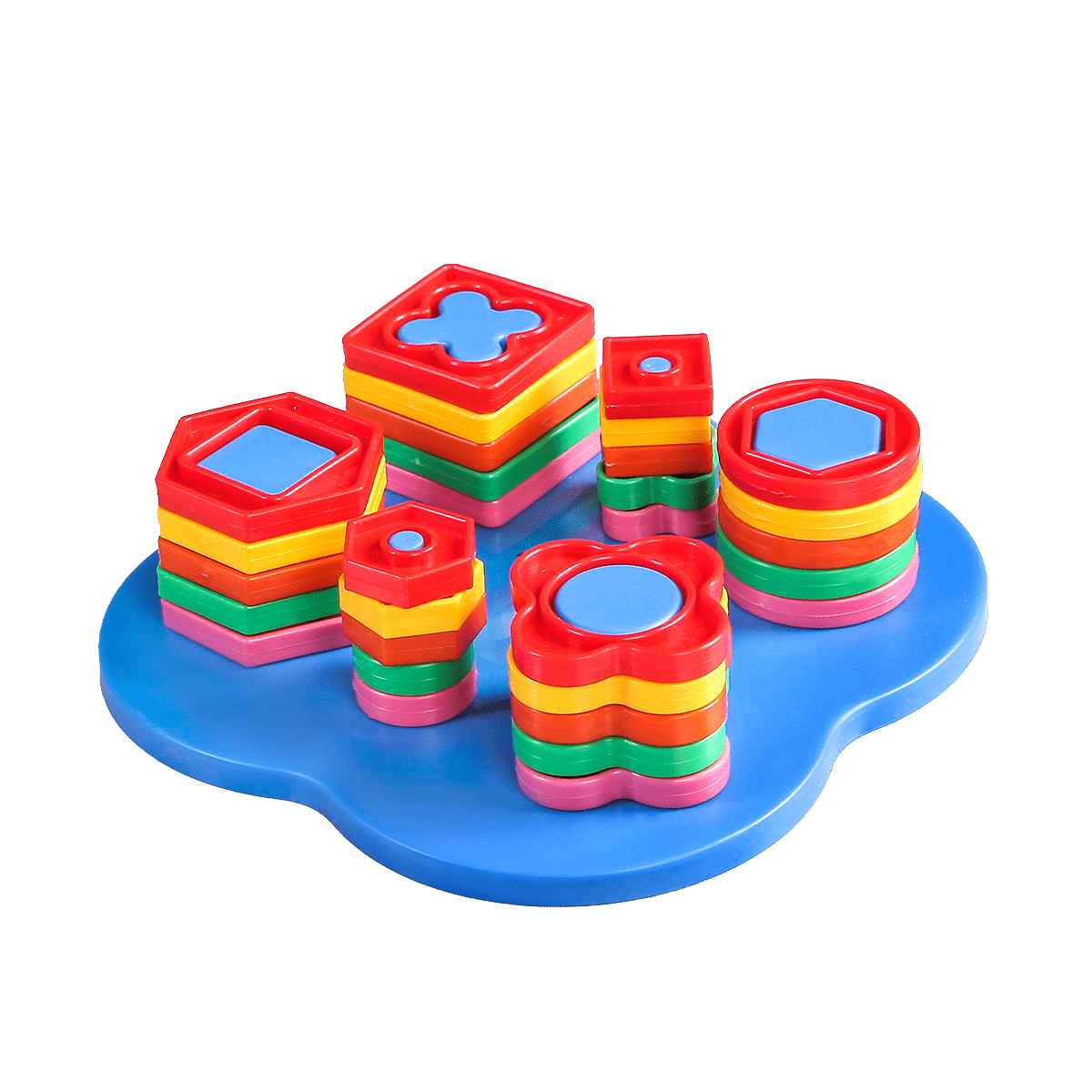 محتویات: یک صفحه پایه، میلههای پایدار و قطعات رنگی با اشکال هندسی مختلف (مانند دایره، مربع، مثلث، ستاره و غیره).