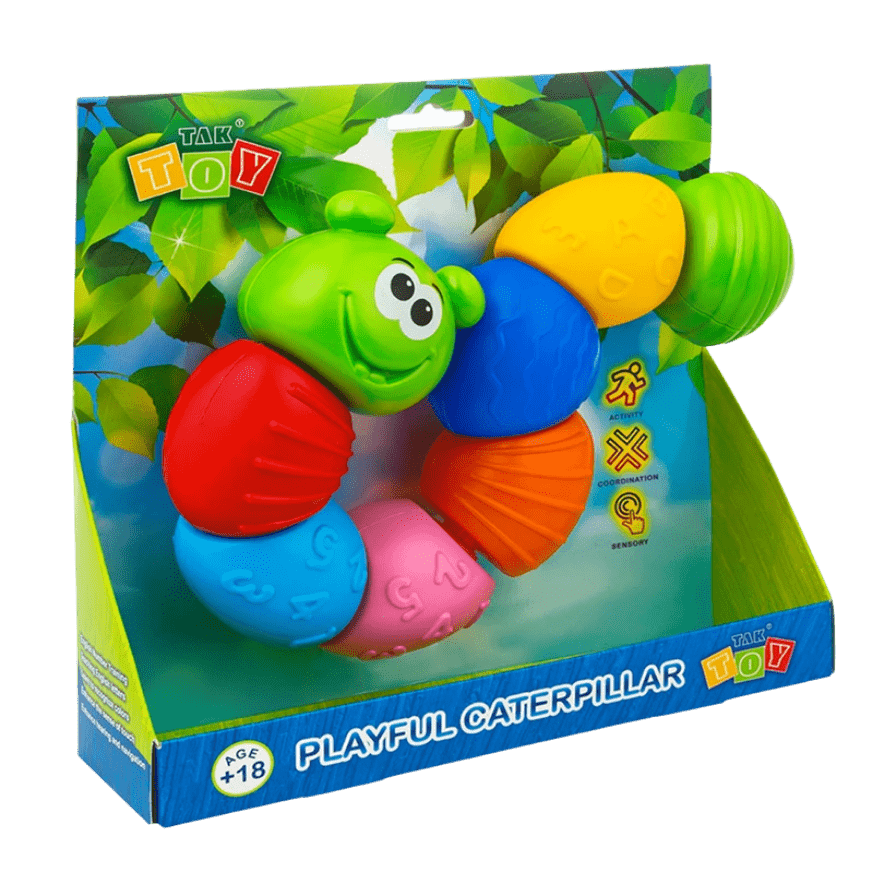کرم ابریشم بازیگوش به رشد مهارتهای حرکتی و حواس کودک کمک میکند. به دلیل حرکات و رنگهای روشن، این اسباببازی انتخاب اول برای نوزادان است.
